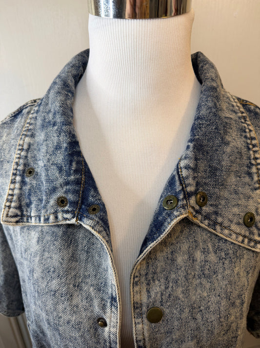 Amber Moon Revival: 100% Cotton Acid Washed Denim Belted Shirt Jacket