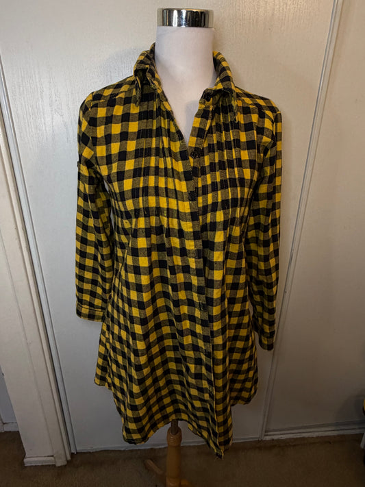 Amber Moon Revival: Yellow and Black Plaid Flannel Tunic - 100% Cotton