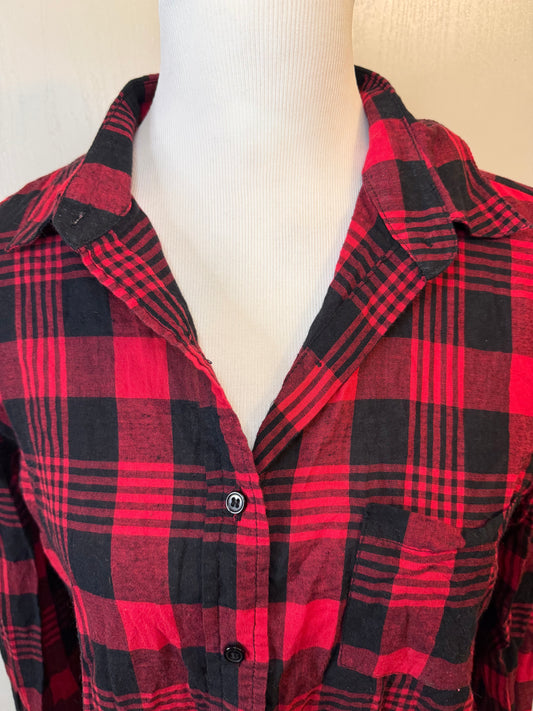 Amber Moon Revival: 100% Cotton Red & Black Plaid Button Down
