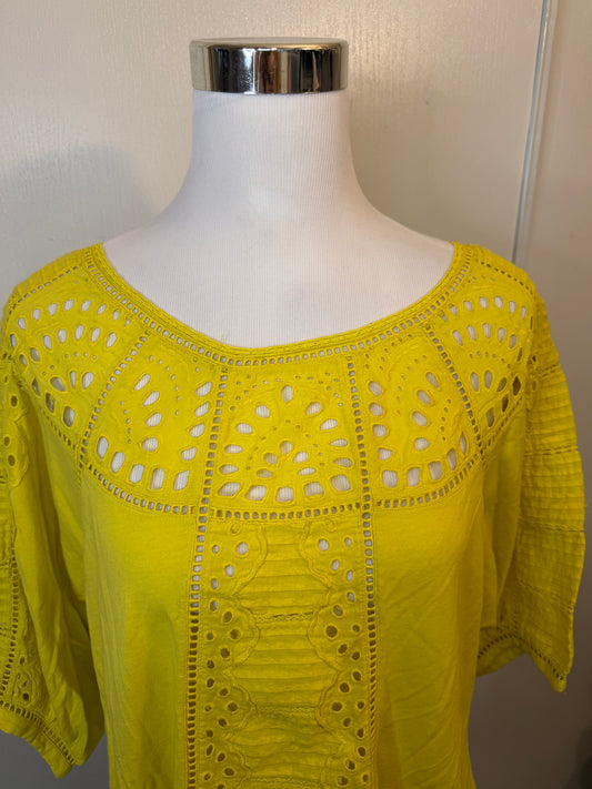 Amber Moon Revival: 100% Cotton Yellow Eyelet Blouse