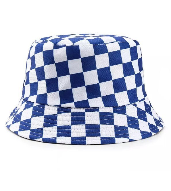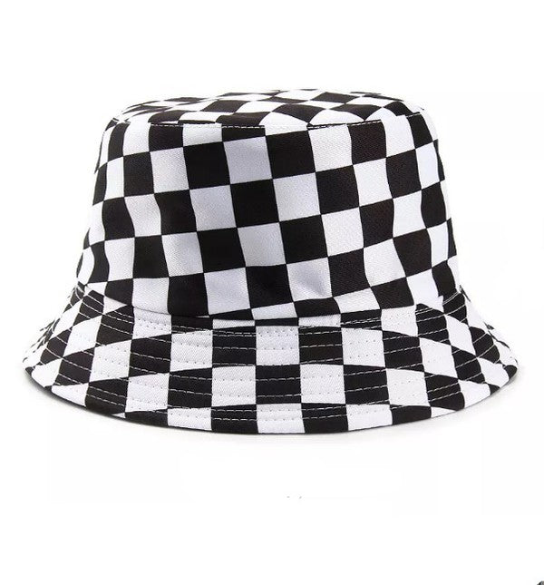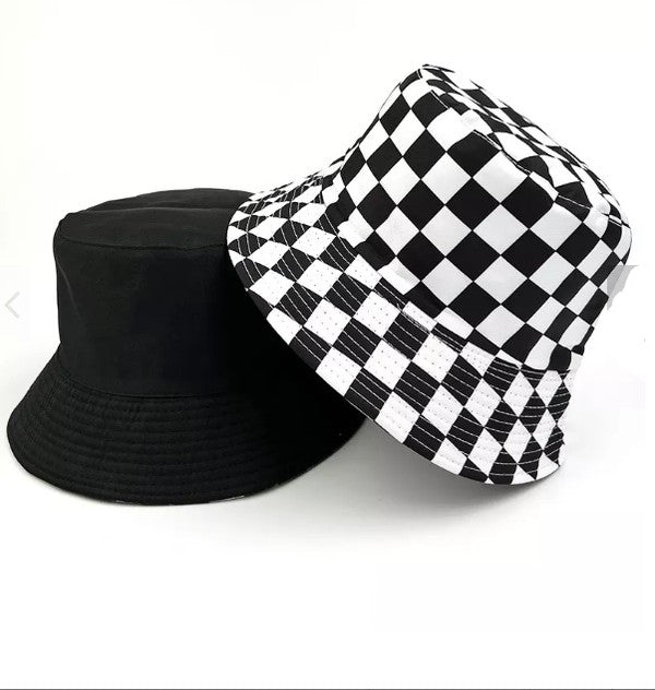 Bucket hat with checkered pattern - adjustable drawstring and reversible