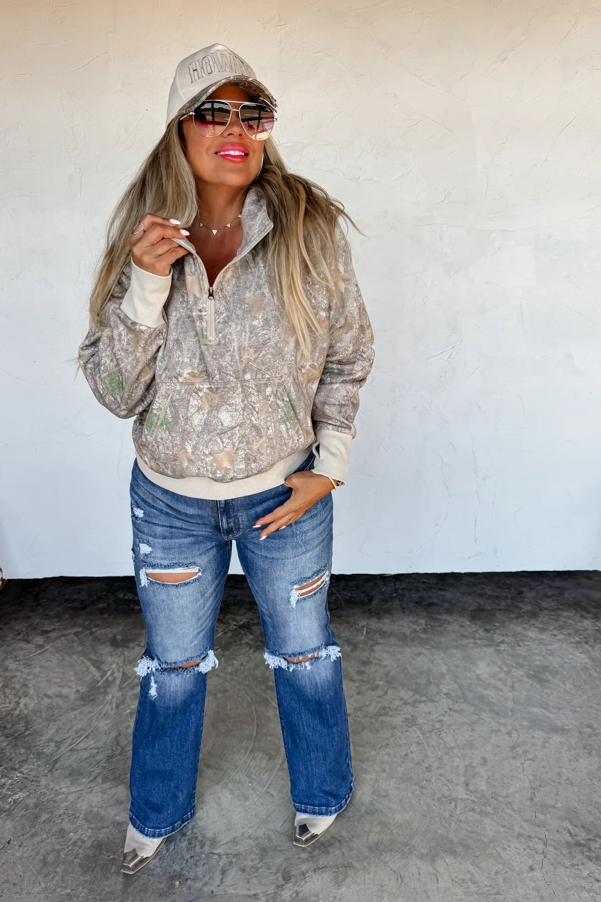 Our cute new camo washed hoodie offers a perfect blend of comfort and practicality. Crafted from high-quality fabric, this pullover has a relaxed fit and comes with a front pocket, zip up neckline and hoodie. Semicrop length (covers belly and past top of waist!) Not too short or too long! Perfect! Of course!!! - thumbholes are present!